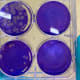 In this plaque assay, the cell culture has been stained purple so that the infectious SARS-CoV-2 particles, or virions, can be seen clearly. The circles represent single infectious virions that have poked holes in the cell culture.